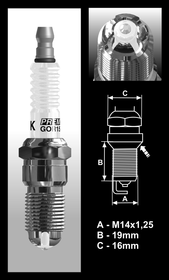Speciální zapalovací svíčka s extrémně dlouhou povrchovou jiskrou. Tuning nebo Racing. Odrušovací odpor, speciální jiskřiště s možností přeskoku jiskry po 360° .
